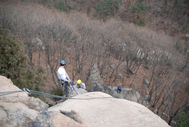 등반 : 아침 일찍 식사후 텐트 걷고 조금만 오르면 등반하기 좋은 암장이 있음.